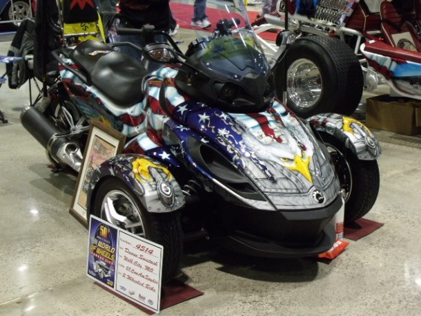 No podian faltar las que estan de moda y salen en varias peliculas, la Spyder Can Am, esta estaba personalizada muy gringamente: