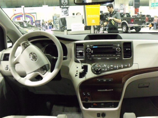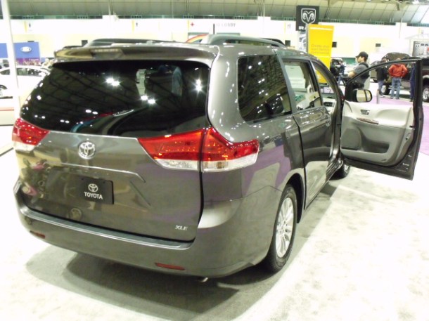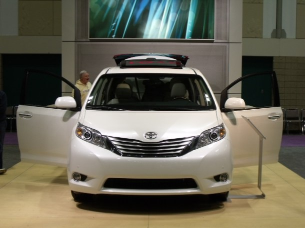Toyota Sienna supuestamente modelo 2011, cambia completamente, esta mejor aunque casi pierde su escencia de minivan, ahora parece una enorme guayin gracias al frente tipo Camry y la parte de atras parecida a la Venza, por dentro la asimetria no se ve tan mal, la version LE cuesta $30.029.