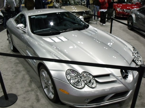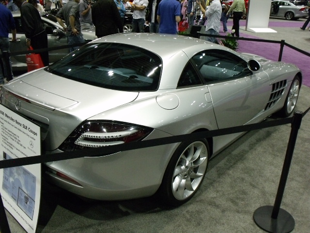 Mercedes Benz SLR McLaren el maximo exponente de la marca, si es bueno ver el SL, el SLR es todo un taco de ojo, a pesar de que ya es un auto descontinuado sigue siendo un placer verlo cara a cara, su precio de nuevo era $495,000 pero podria subir conforme pasa el tiempo al ser un auto de coleccion. Como todos sabemos este fue el producto de la union de Mercedes Benz y McLaren Automotive, lo que algunos no saben es que SLR significa: Sport Light Racing y es que en realidad es ligero pues el chasis es de fibra de carbono.