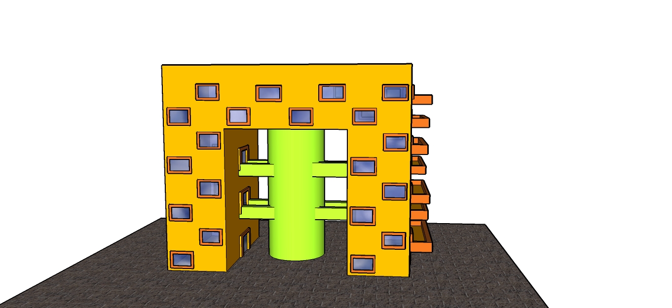 6. Edificio de departamentos con entrada comun en la parte de enmedio, basado en el edificio conocido como «El Pantalon» de la capital mexicana: