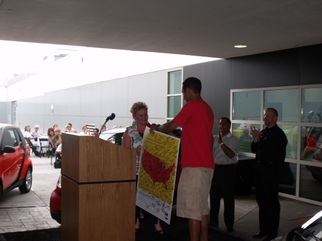 Entrega del poster autografiado a la Presidente de SmartUSA
