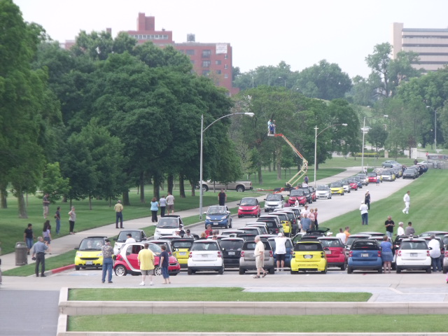 Asi pues, despues de 11 meses de planeacion llego la fecha que atrajo a 215 Smart Fortwos, que si tomamos en cuenta su tamano, equivaldrian a 107.5 carros de tamano «normal», sin embargo, aclaro que eso no significa que nos divertimos solo la mitad, al contrario, nos divertimos el triple pues tuvimos que llevarnos 3 carros, uno de los cuales fue uno de los favoritos del evento.