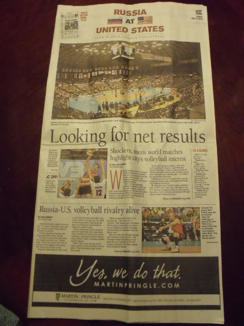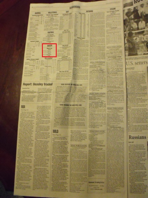 - Aqui otro ejemplo de que les dolio la eliminacion, recientemente un periodico dedico 3 paginas enteras de la seccion de deportes a un juego del Mundial de Volleyball entre Rusia y Estados Unidos, a quien le interesa el Mundial de Volleyball? (para ser honesto yo ni sabia que se disputaba eso) aparentemente solo a ellos, y cuanto le dedicaron al Mundial de Football? lo veran circulado en rojo en la segunda foto de abajo: