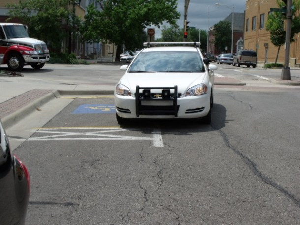 Buen ejemplo a seguir, estacionada perfecta en lugar para discapacitados. Como pueden ver, justo adelante hay otro lugar libre.