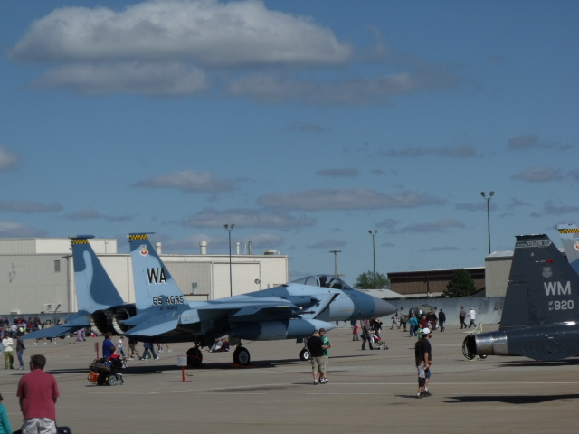 Y fue precisamente debido a estos vinculos de la ciudad con la aeronautica que fuimos a visitarla, resulta que la Base Aerea local tuvo su «open house», que incluia un show de aviones, prometia esta interesante, y realmente lo estuvo, aqui algunas imagenes, de cuando estaba nublado, por fortuna, al poco tiempo el sol estaba esta asomandose.