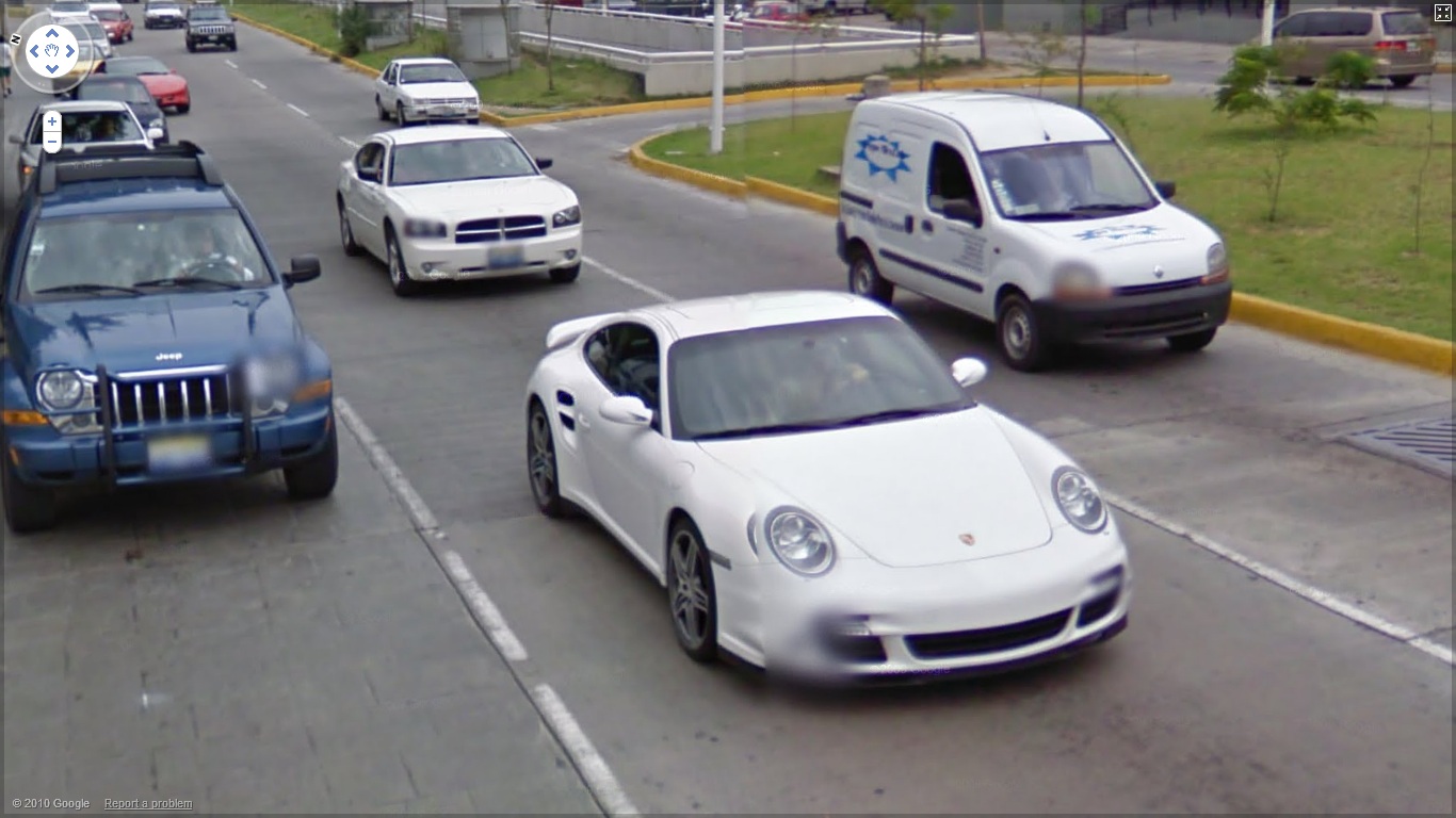 Este otro ejemplo lo podemos ver en Google Street View, imagen capturada en Guadalajara. Vemos un Porsche 911 seguido por un Dodge Charger.