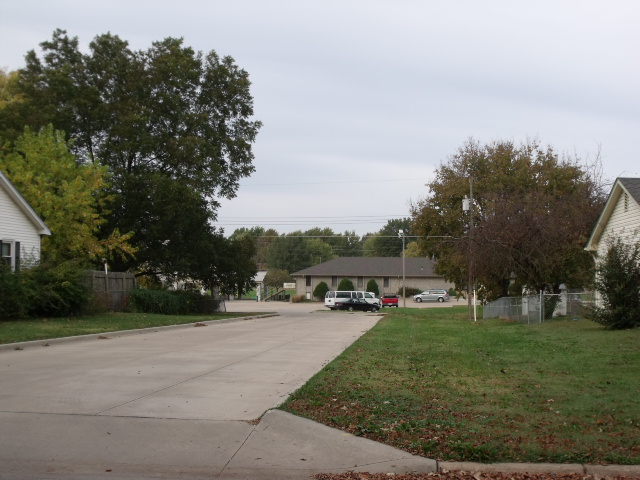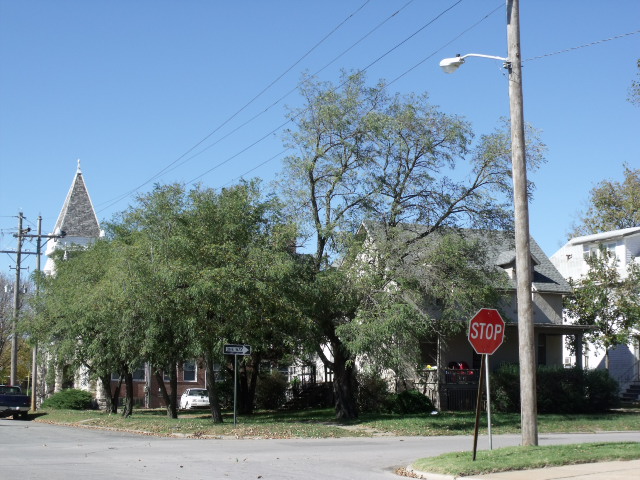 Aqui vemos la propiedad que sera demolidad y mas atras la iglesia.
