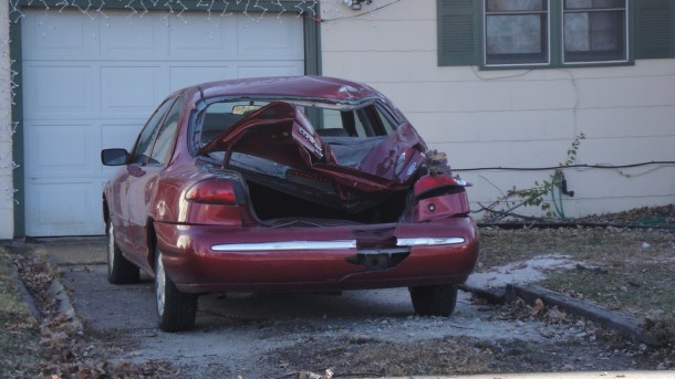 Esta manana, el dano era mas evidente, milagrosamente no se metio a la casa: