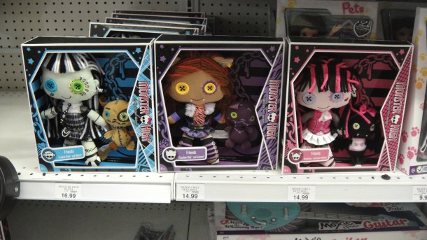 Hoy veremos, como dice el titulo, unas munecas nuevas, al decir munecas, algunos pensaran en las de trapo, otros en las barbies, que son hasta cierto punto, normales,pero a alguien se le ocurrio hacer munecas diferentes, se pregunto como serian las hijas de ciertos monstruos y vampiros (que siguen de moda por alguna razon) entre ellos, el hombre lobo, Frankestein y Dracula.