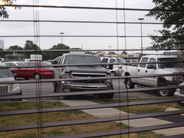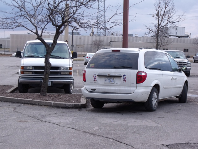 No se ve muy bien, pero justo enfrente de la camioneta, donde termina el pasto, empieza un estacionamiento, haberla estacionado asi, solo para tener un poco de sombra, no tiene perdon...