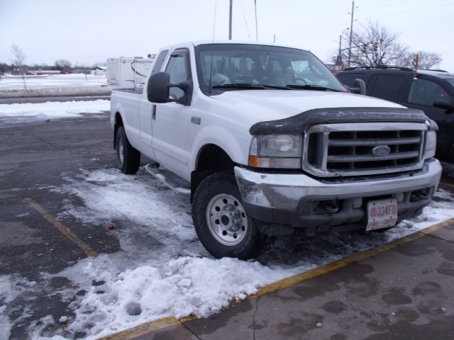 Camioneta del que era el Superintendente del Distrito Escolar, se alcanza a ver la linea amarilla que llega hasta donde empieza la llanta trasera.