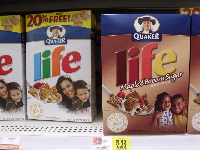 Sin embargo, si analizamos un poco las cajas del cereal, veremos que la caja de la izquierda, se caractiza por tener el cereal blanco, la caja es blanca y las personas tambien, la caja de la derecha por el contrario, el cereal es mas oscuro, la caja es cafe y los ninos son morenos, poniendo de pretexto que el cereal es de sabor maple y azucar morena. Por si fuera poco, las cajas estan juntas pero no revueltas, y esas no son las unicas combinaciones del cereal Life.