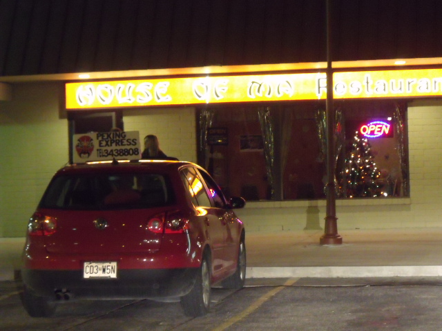 Resulta que algun chino del restaurant Peking Express decidio ir a cenar con la competencia, con House of Ma, esa no es la traicion, sino que lo hizo sin quitarle el letrero que lo acredita como repartidor del primer negocio. Por cierto, Peking Express es donde trabaja el peor cocinero del mundo ( https://alsrac.wordpress.com/2010/12/15/el-peor-cocinero-del-mundo/), me pregunto si por eso es que los propios empleados prefieren irse a cenar con otros chinos.