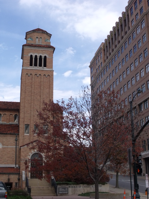 En Kansas City, es la zona llamada Country Club Plaza, es un area con tiendas de ropa y accesorios exclusivos, restaurantes, hoteles, torres de departamentos y una iglesia, pero no cualquier iglesia, sino la iglesia de Cristo Cientifico, esa que tiene como lider espiritual a Tom Cruise segun una pelicula.