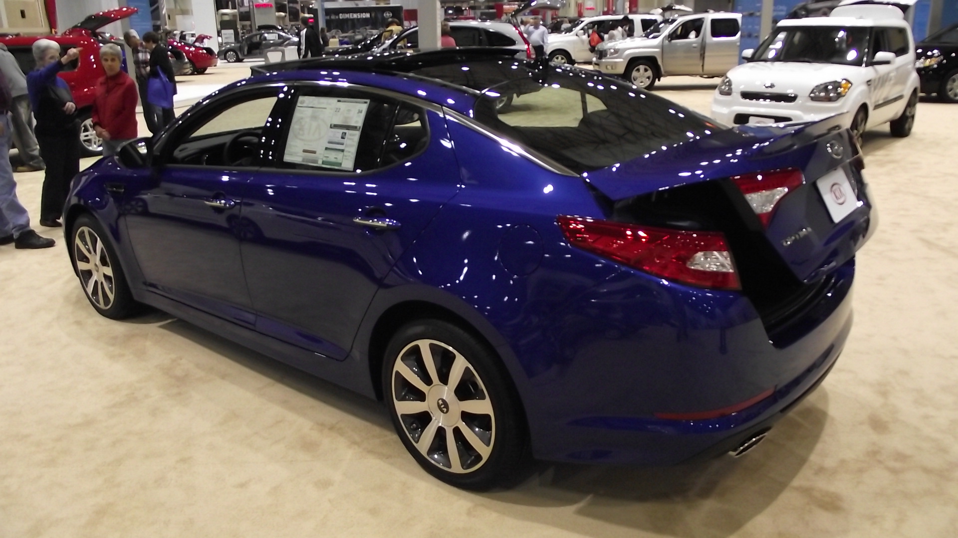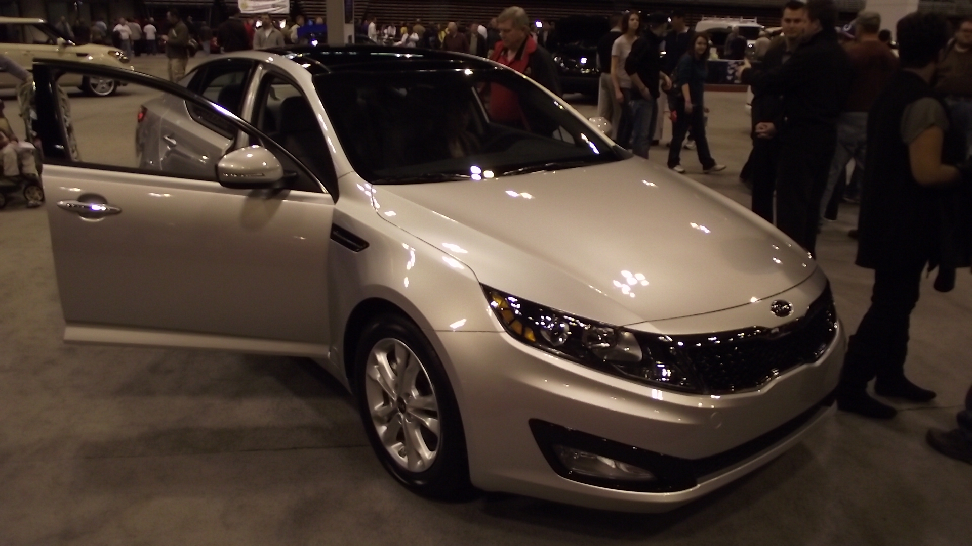 Es el primo del Hyundai Sonata, y es que Hyundai y Kia son companias hermanas, aunque no se parecen en nada. Los Hyundai famosos ultimamente por sus ondulaciones exageradas contrastan con los Kia de lineas mas rectas y cara afilada.