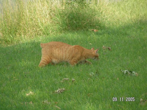 Hace ya muchos anos, me encontre con este gato sin cola, como ven se ve raro, pero no tan mal, y con ese ambiente hasta parece un animal salvaje, sin embargo, son tan raros los gatos sin cola, que en 3 decadas de existencia, este es el primero y unico que he visto, asi de escasos son.