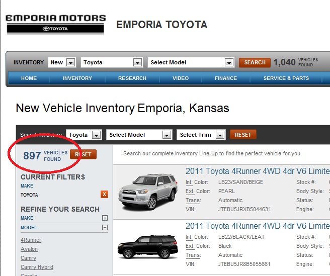 No se ustedes, pero esos me parecen que sean 897 vehiculos, ni siquiera 89.7 y no creo que adentro en el area de servicio tengan el resto, ya que contrario a otras agencias, ellos no tienen lotes adicionales para almacenar autos, entonces me pregunto, el numero de su pagina en internet es error o presuncion?