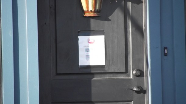 No pudimos acercarnos mas ya que un letrero en la puerta aparentemente intenta detener o evitar visitantes, no estamos seguros, pero casi, y es que ni con todo el zoom de la camara pudimos descifrar las intenciones de los nuevos y orgullosos dueños:
