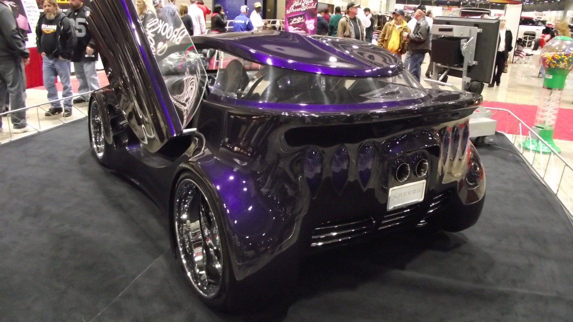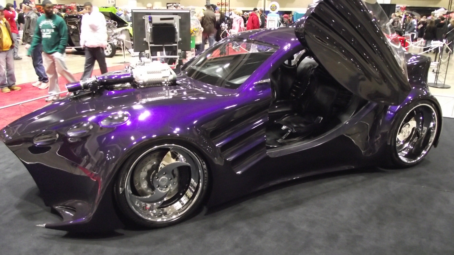 Solo tiene algo que merece respeto, su motor de 1005 HP, si se preguntan que era en su vida anterior, tardarian en adivinarlo, y es que hasta el 20o8 era un Mustang GT Convertible, y ahora es, esta especie de Batimovil morado.