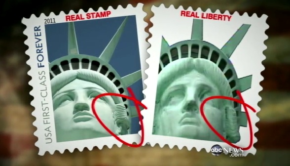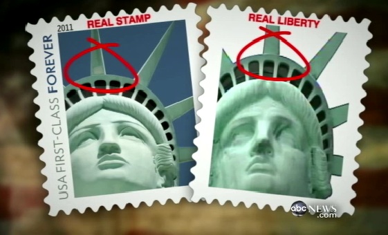 Recientemente, el servicio postal gringo saco una estampilla que deberia tener a la Estatua de la Libertad, y la tiene, solo que no la original, sino la replica, la cual se encuentra en el casino New York – New York de Las Vegas. Un experto se dio cuenta del error.