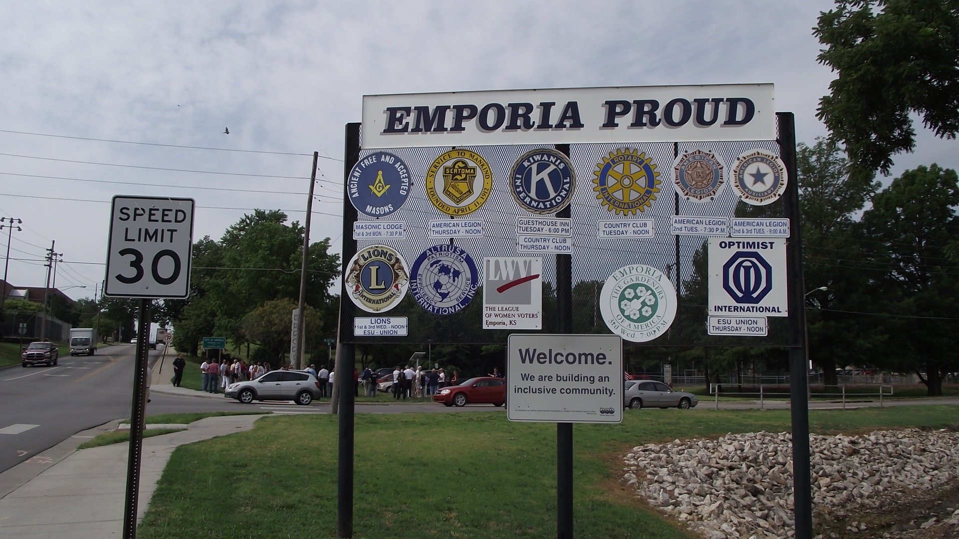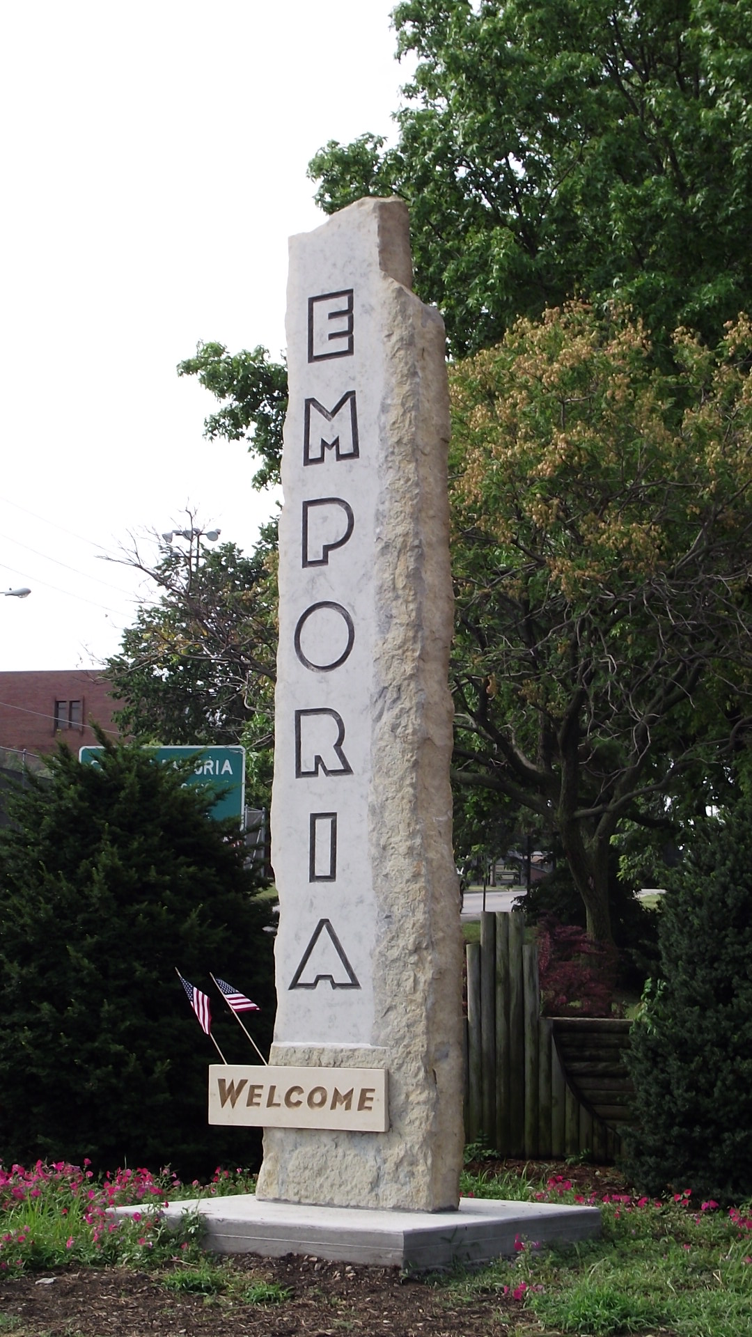 Al ver las piedras, lo primero que resaltan son las letras, que dan la sensacion de estar incompletas, pretendieron que se vieran modernas, pero solo lograron que parezcan que no estan terminadas, que se precipitaron por ponerlas justo a tiempo para que los representantes de los ya casi obsoletos mapas Rand McNally las vieran y tal vez decidieran que gracias a esas piedras, Emporia es la ciudad mas patriotica de la nacion.