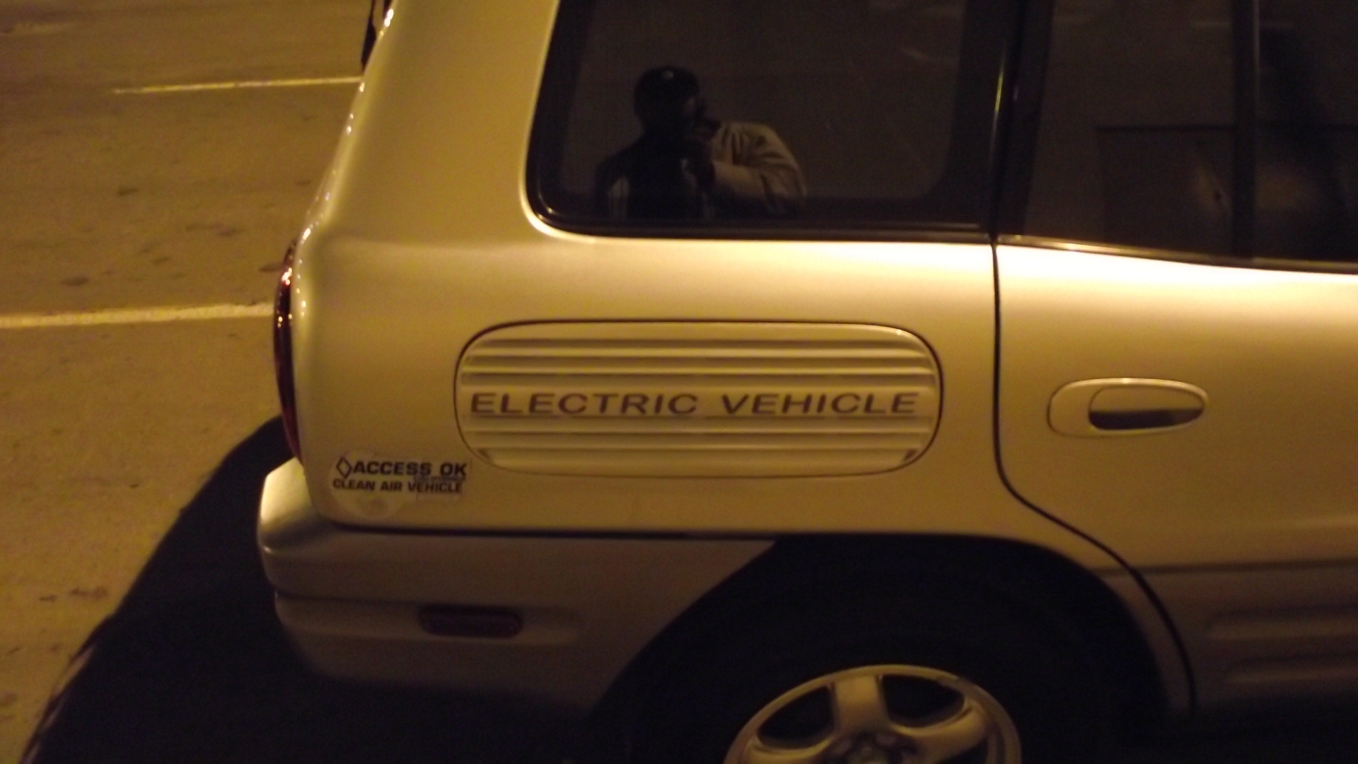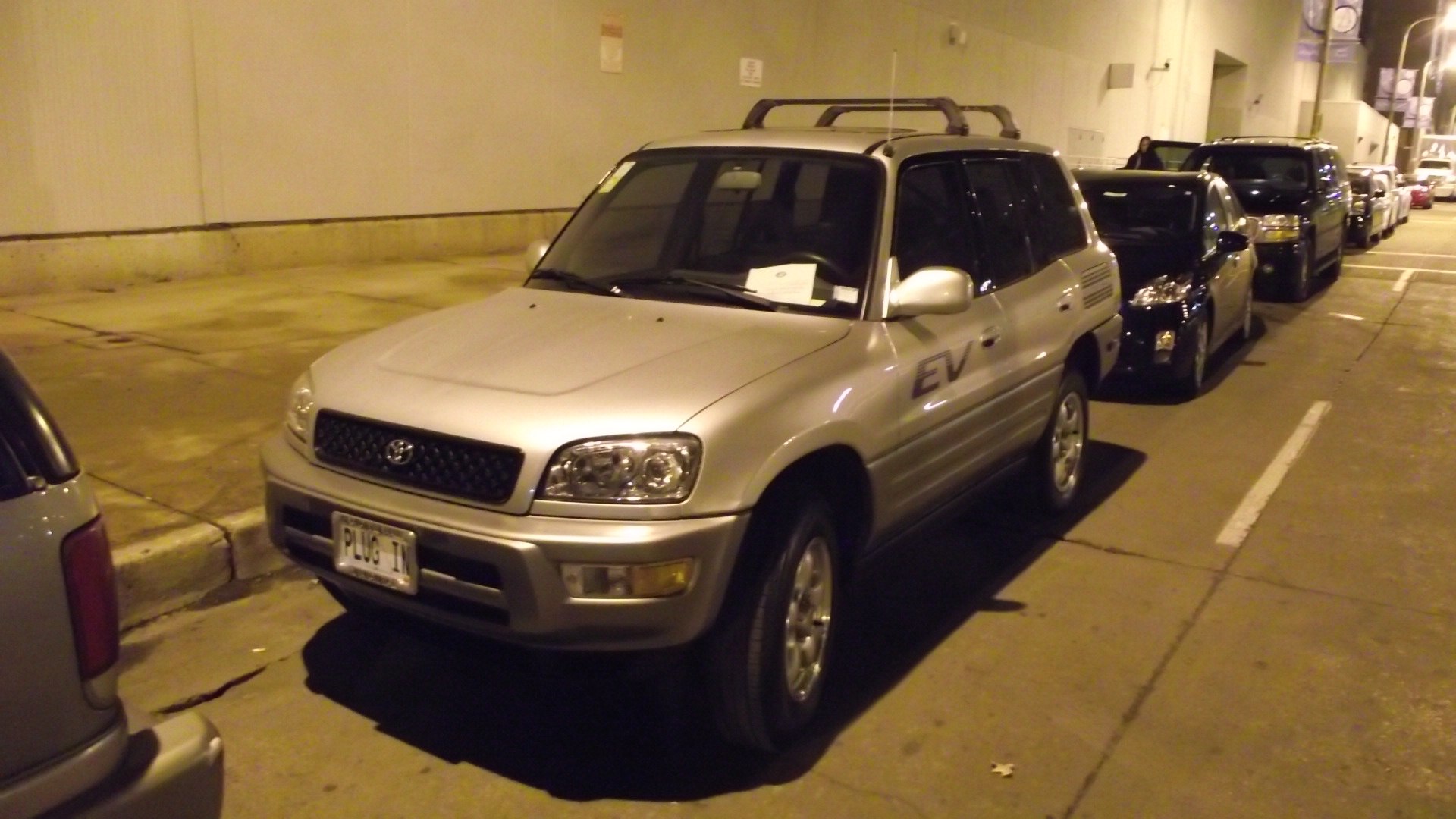 Sin embargo, viendola detenidamente, notaremos la ausencia del tapon del tanque de la gasolina, y es que estamos ante una Rav4 EV, esa que solo se vendio durante muy pocos meses en el 2002, y solo se vendia en California, esta unidad la vi en Missouri,