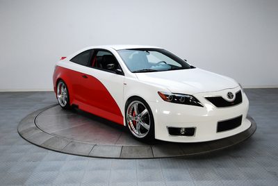 La creacion que vemos aqui es una mezcla de ambos: Camry y Solara. Es el fruto de la union de TRD (Toyota Racing Development) y una compañia llamada RK Motors, intentaron que pareciera un auto de Nascar, y es que increiblemente Toyota compite en esa serie automovilistica. Ha estado en varios car shows, incluido el SEMA que como sabran es donde se muestran mas adefesios que nada.