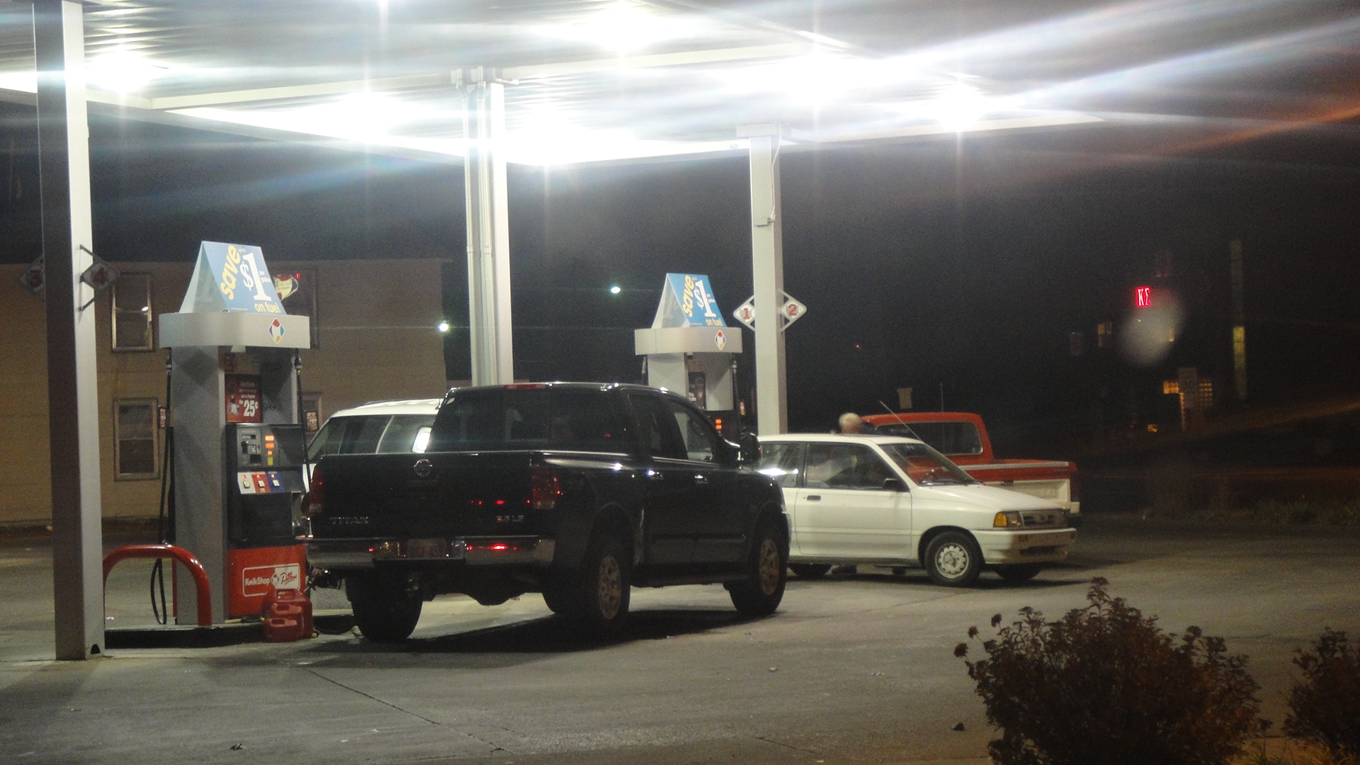 En este pais, tan malacostumbrados a las comodidades, tienen una rara costumbre, en la inmensa mayoria de las gasolineras, los conductores son los que le ponen la gasolina a sus autos. Eso se presta a que haya derrames, explosiones, robos al irse sin pagar, y muchas cosas mas, tambien se presta a que la gente se acomode de una manera poco ortodoxa para cargar combustible, aqui esta un ejemplo que explica a la perfeccion a lo que me refiero: