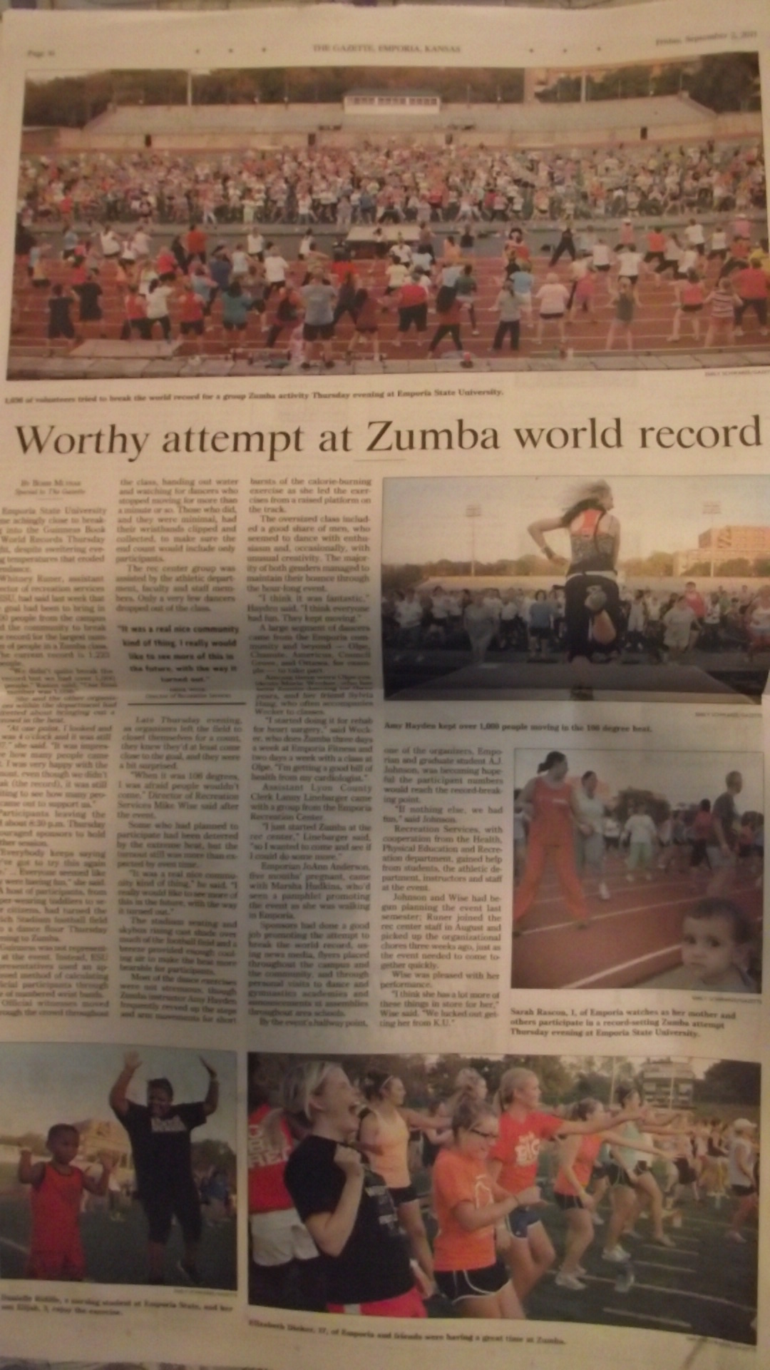 Hace un par de dias les platique sobre el intento fallido de varios habitantes de nuestra ciudad por lograr romper el Record Guinness de la «Mayor Clase de Zumba», faltaron 187 personas para haberlo logrado, el calor fue un factor decisivo, ese dia regresaron las altas temperaturas y ahuyento a posibles participantes.