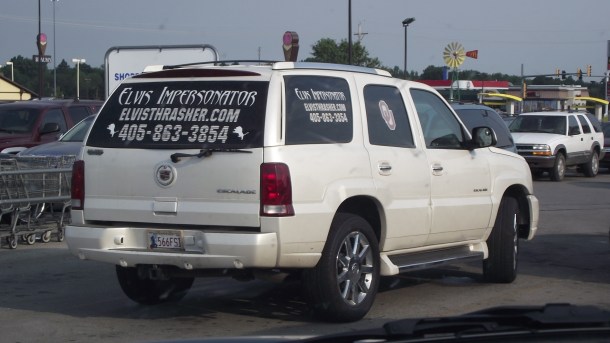 Respuesta: Este señor llamado Darin Thrasher se la vive imitando y personificando a Elvis Presley: