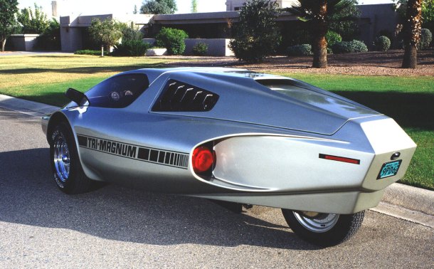 El Tri-Magnum utiliza la configuracion de un triciclo invertido, es decir 2 ruedas adelante y una atras, es un proyecto para que quien lo compra lo haga, fue diseñado por alguien llamado Robert Riley y hoy en dia se pueden adquirir los planos para hacerlo por solo $95 dolares, despues se debe de juntar una moto y un auto para donar sus partes utiles y tener como resultado el Tri-Magnum, se estima que el costo final es entre $3,500 y $5,000 dolares mas el costo de la motocicleta.