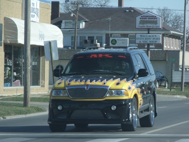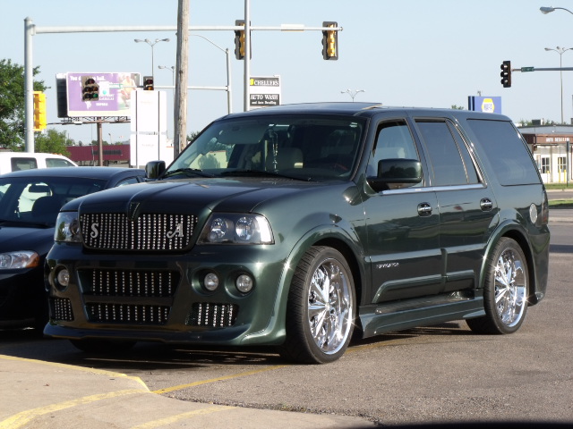 Aqui tenemos un par de Lincoln Navigators, esa SUV del grupo Ford, la hermana rica de la Expedition, la que despues de la Escalade es la preferida de los raperos y los que se ganan la vidad traficando hierbas y polvos. Al tener su segunda vida como seminuevas, pasan a otro tipo de sociedad, la cual en un intento por demostrar y presumir su poder adquisitivo la adornan de una manera muy singular.