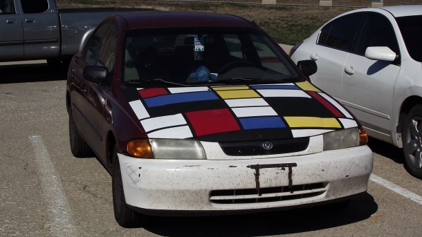 Sin lugar a dudas este Mazda Protege tiene un dueño que es amante del arte abstracto.