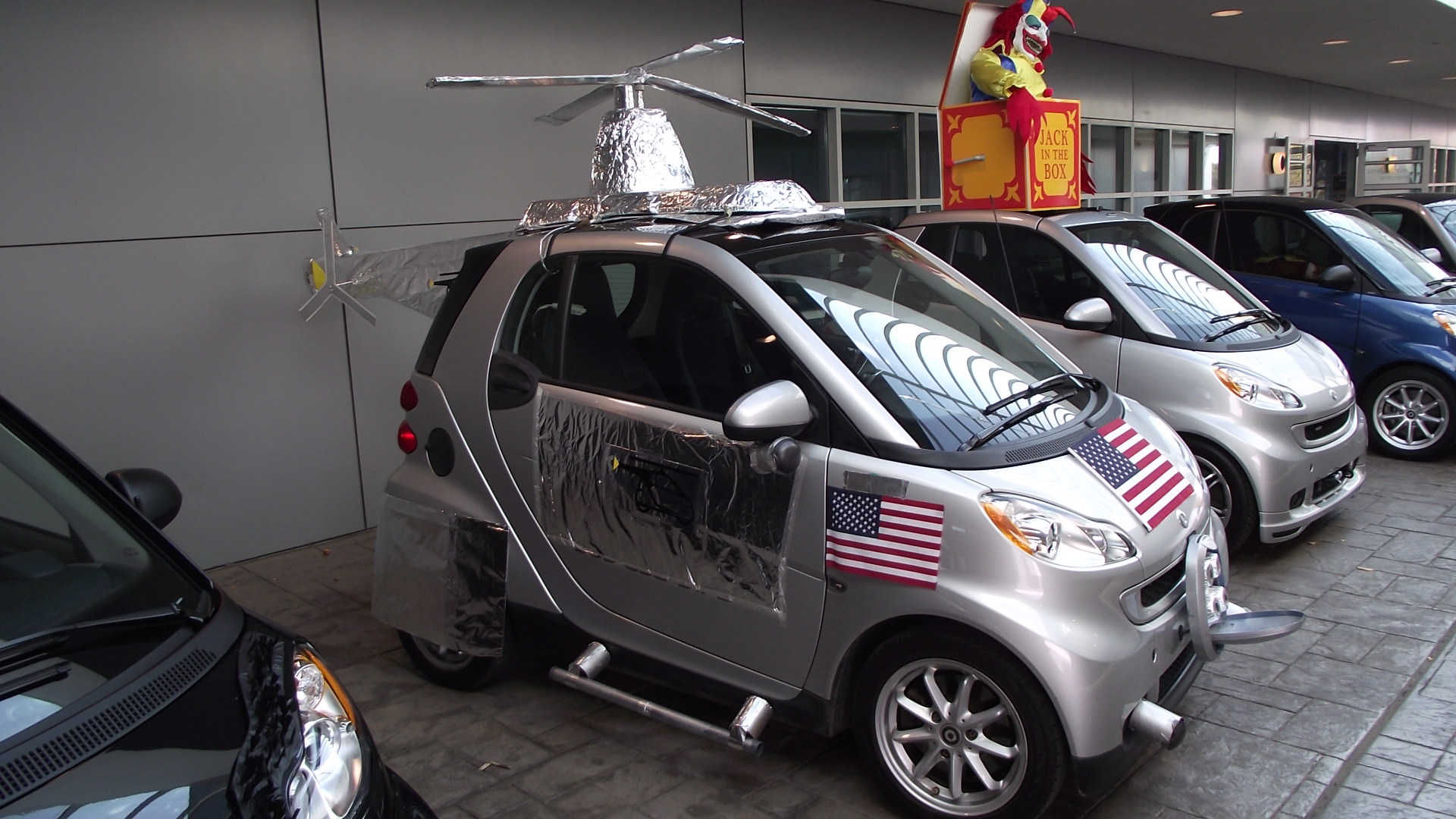 Llegando a la agencia disfrazamos a Piojin, en esta ocasion de helicoptero, si estan preguntadose por la Pulga, se quedo en casa, no es que no hubieramos querido llevarla, pero nos enfrentamos con un dilema: 3 carros y 2 conductores no es una buena ecuacion, no logramos conseguir un voluntario que hubiera tenido carro con gasolina incluida, ademas de comida gratis por todo un dia, al parecer aqui no conocen el dicho: ‘Regaladas hasta puñaladas».
