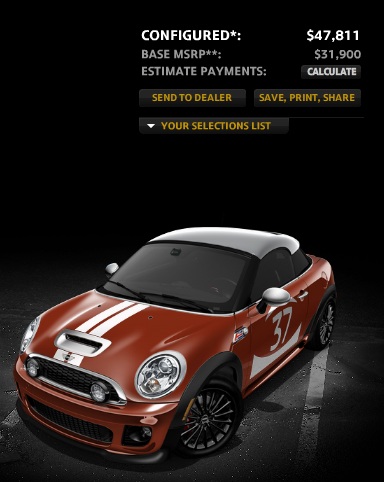 El precio del MINI coupe inicia en $22,000 dolares, pero escogiendo los extras, accesorios, paquetes y amenidades ofrecidos puede llegar a costar hasta $47,811 dolares.