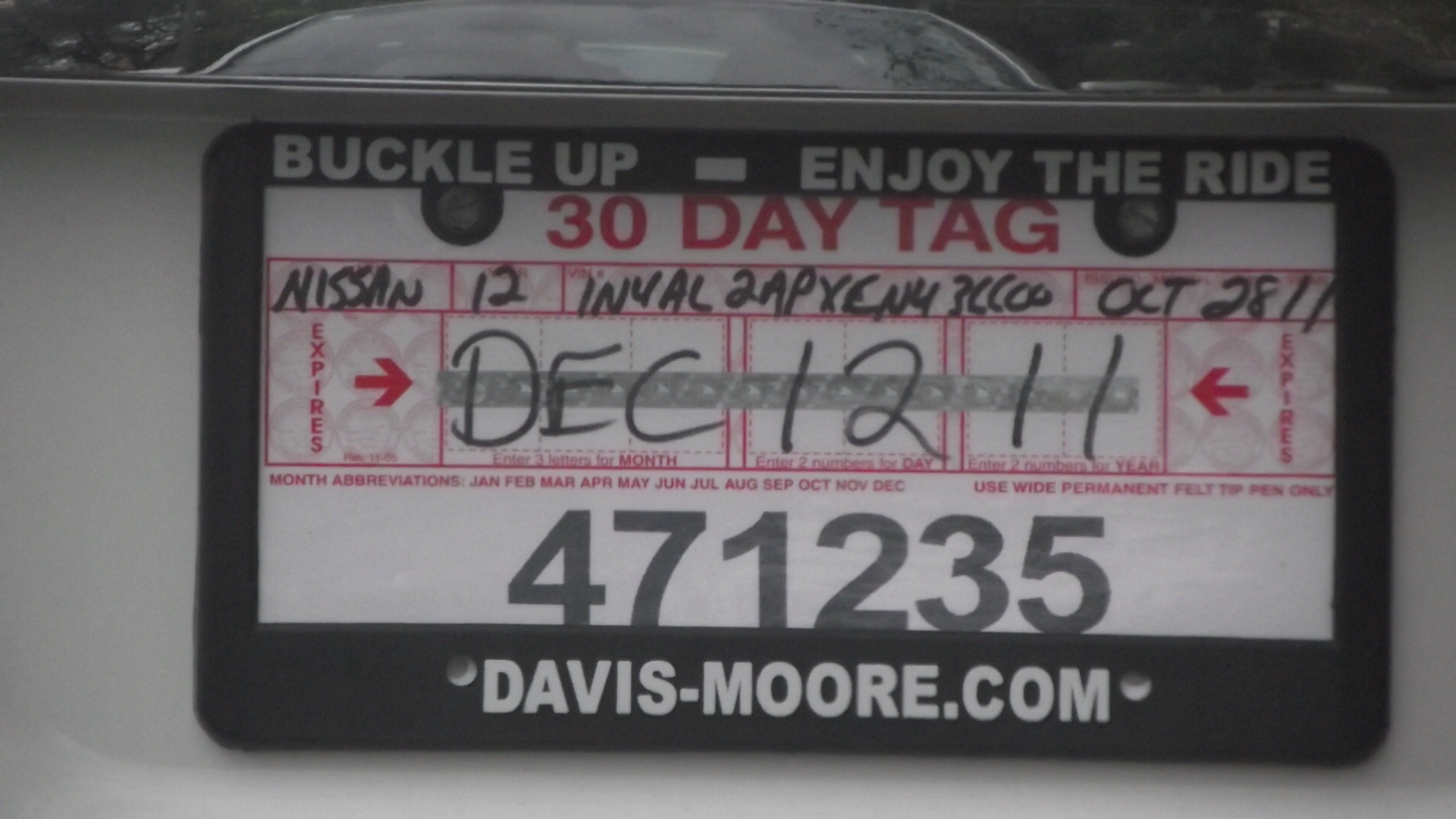 Analizando un poco, vemos que la placa dice que el auto fue comprado el 28 de octubre de este año, y dice que expira el 12 de diciembre del presente, claramente eso es mas que 30 dias, si la placa fuera realmente por 30 dias deberia de expirar el 27 de este mes, y si la placa expira el 12 de diciembre equivaldria a comprar el auto el 12 de Noviembre, por lo tanto, todavia no habrian comprado el auto.
