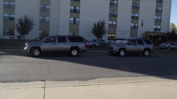 Todos sabemos que la Tahoe y la Suburban comparten infinidad de elementos y estetica, solo que una es mas grande que la otra, es facil verlas juntas en las agencias de autos, pero en la calle, del mismo color y misma version esta mas dificil.