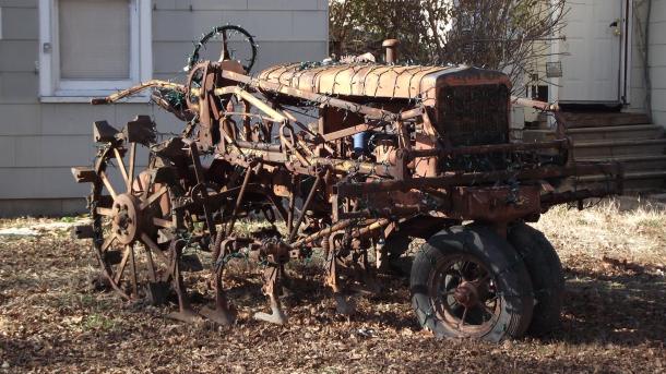Realmente me es dificil entender en que se relacionan un tractor viejo y oxidado y un puerco con la Navidad, en fin, gringos tenian que ser.
