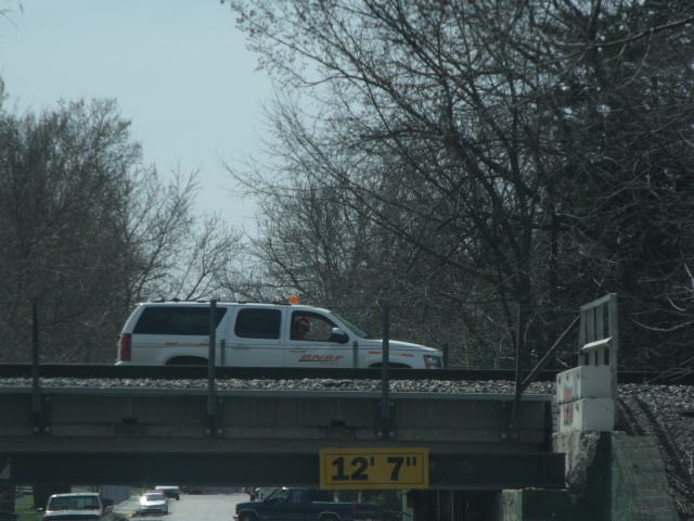 Otra de la empresa de ferrocarriles, esta vez sobre los rieles en un puente.