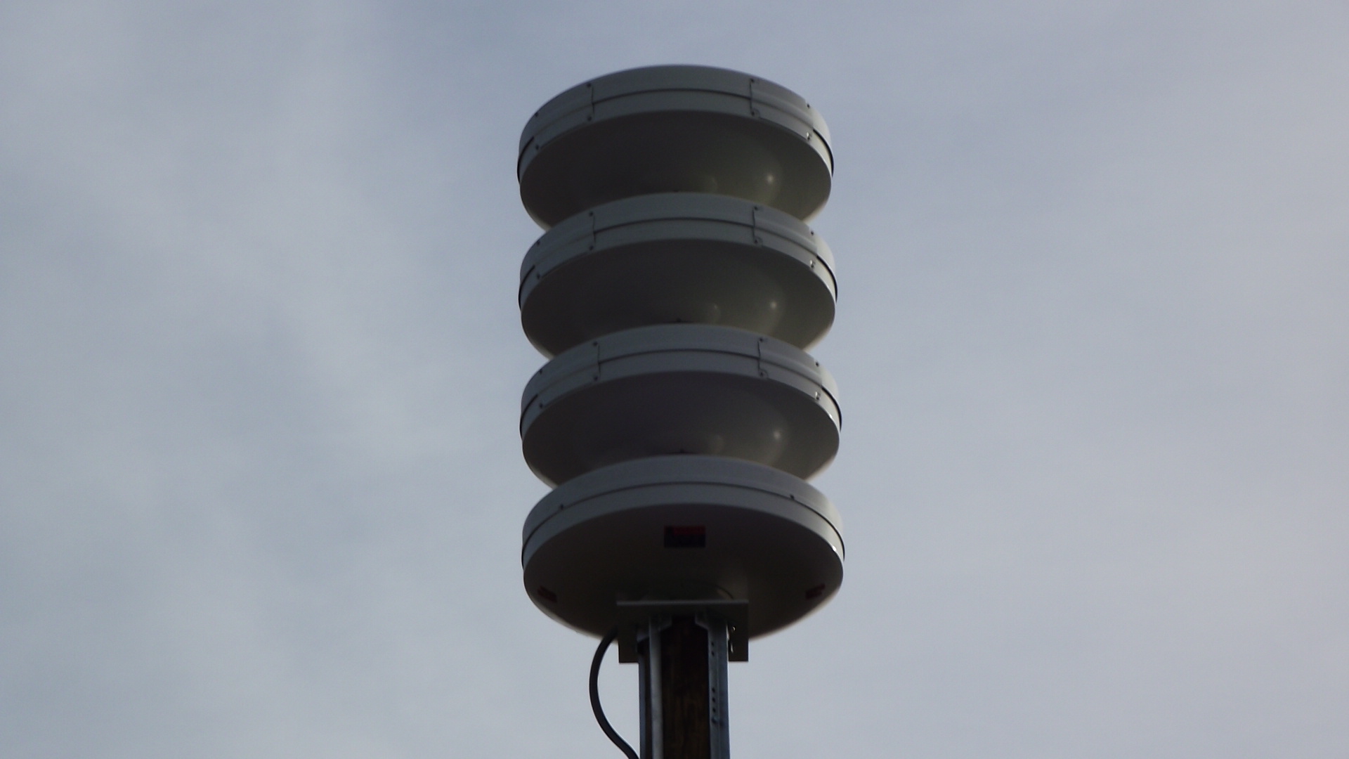 Con el dinero donado por mi empleador, se compro e instalo un moderno sistema de alerta que no es solo una sirena que «aulla» al encenderse, sino que da mensajes hablados dependiendo de la emergencia que se avecina (tornado. tormenta, granizo, etc) y por si fuera poco es un sistema bilingue.