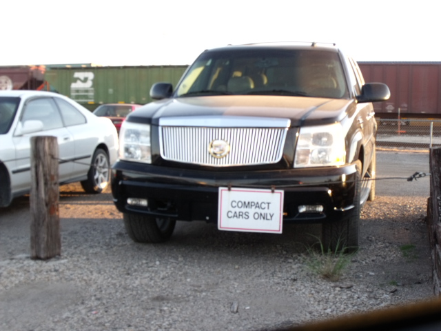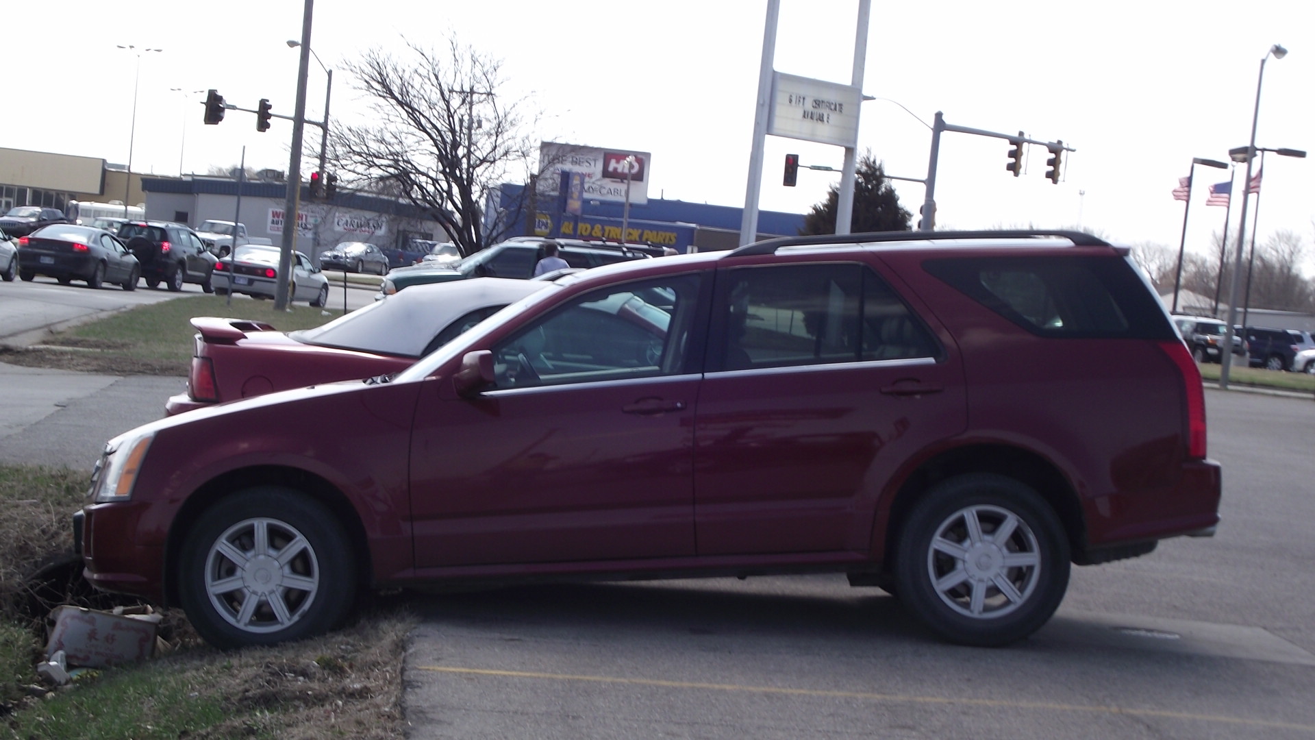 Por increible que parezca, una viejita dejo estacionada su SRX asi mientras fue a comer, aparentemente no sabe que no debe estacionarse en la zanja.