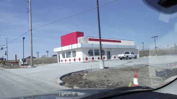 En nuestra ciudad esta por abrir un nuevo restaurante de una cadena regional llamada Spangles, sus instalaciones se caracterizan por tener un diseño cincuentero que se traduce en decoracion rara.