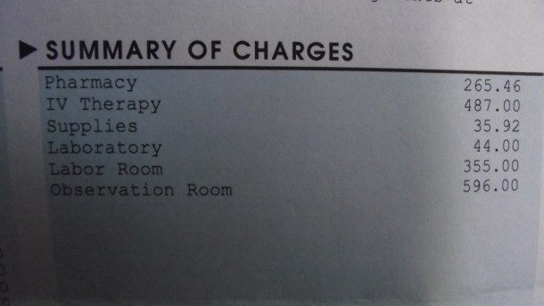 Les dare un ejemplo real: Recientemente estuvimos en el hospital local poco menos de 13 horas, debido a un intenso dolor que le dio a mi esposa llegamos a la 1:45 am, durante mas de 3 horas solo nos tuvieron en un cuarto monitoreando las pulsaciones del bebe, nos trasladaron a otro cuarto y hasta antes de las 5 de la mañana por fin recurrieron a la medicina, aclaro que siempre fue atendida por enfermeras quienes aparentemente hablaban ocasionalmente por telefono con la doctora en guardia, la cual se dejo ver hasta pasado el mediodia, y haciendo honor a su profesion solo hizo la tipica «visita de doctor» de 5 minutos. Cerca de las 2:30 pm dieron de alta a mi esposa. El diagnostico, aunque ya sabiamos era una piedra en el riñon, la cual salio por si sola hasta un dia despues. El precio por todos los servicios que resumiria a cuarto, morfina y desayuno: el equivalente a mas de $21,000 pesos.