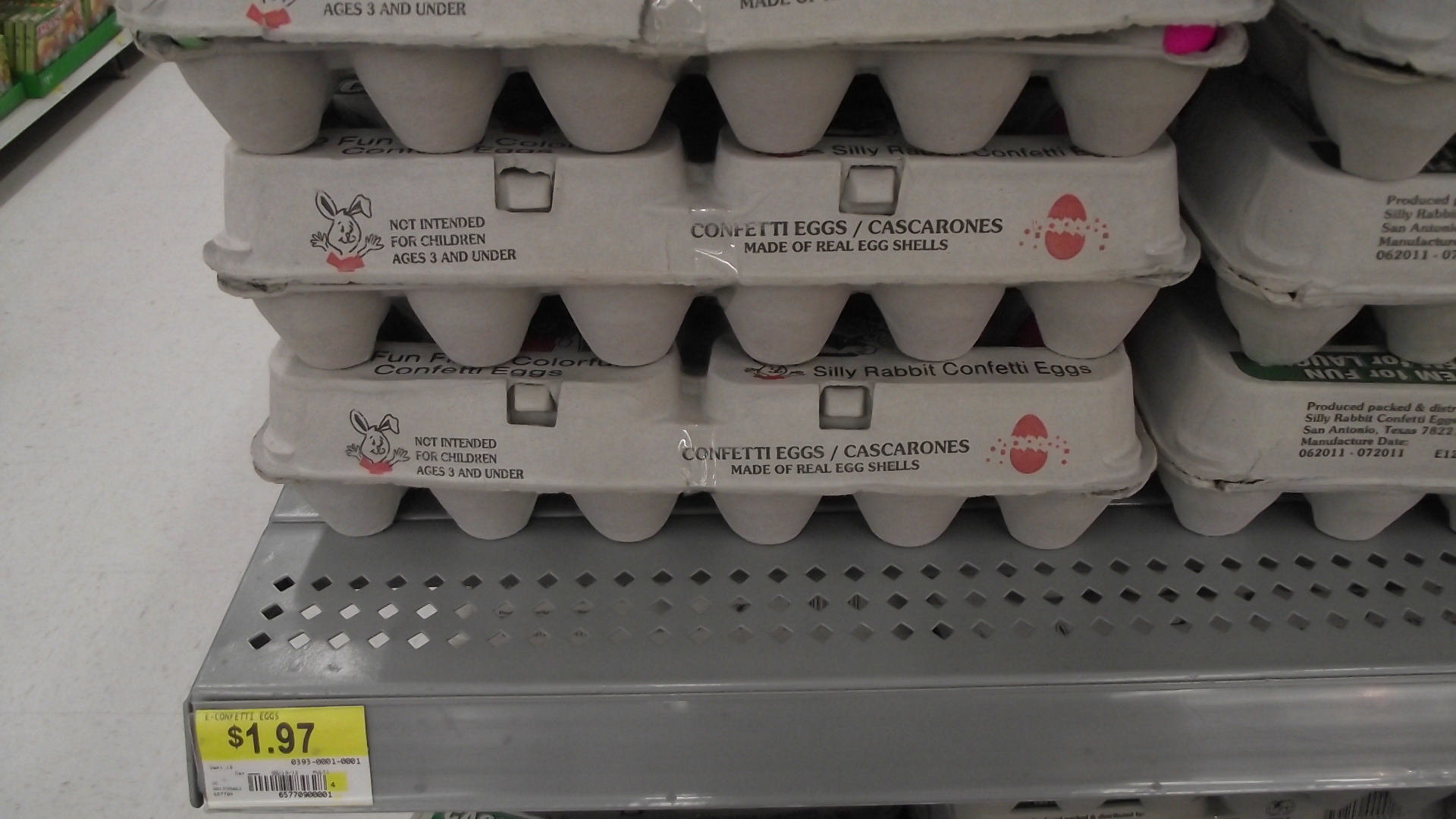 Lo asombroso es que los huevos fictisios que solo contienen confetti cuestan 9 centavos mas caros que los reales, que como todos sabemos contienen fetos de pollo. Los huevos falsos son puro desperdicio, monetariamente hablando, en cambio los reales al menos son alimento. Para mi eso es ilogico, ustedes que piensan?