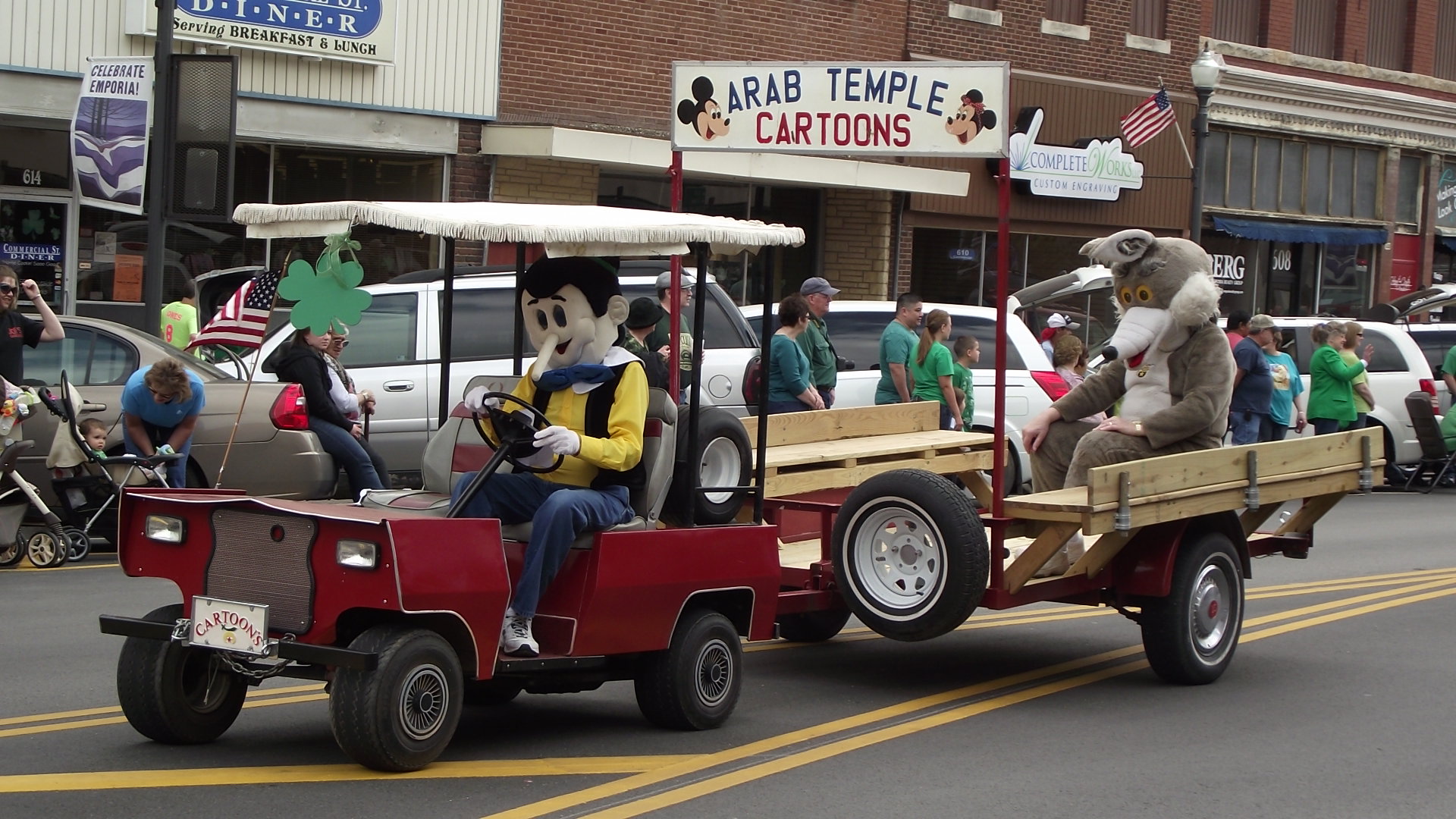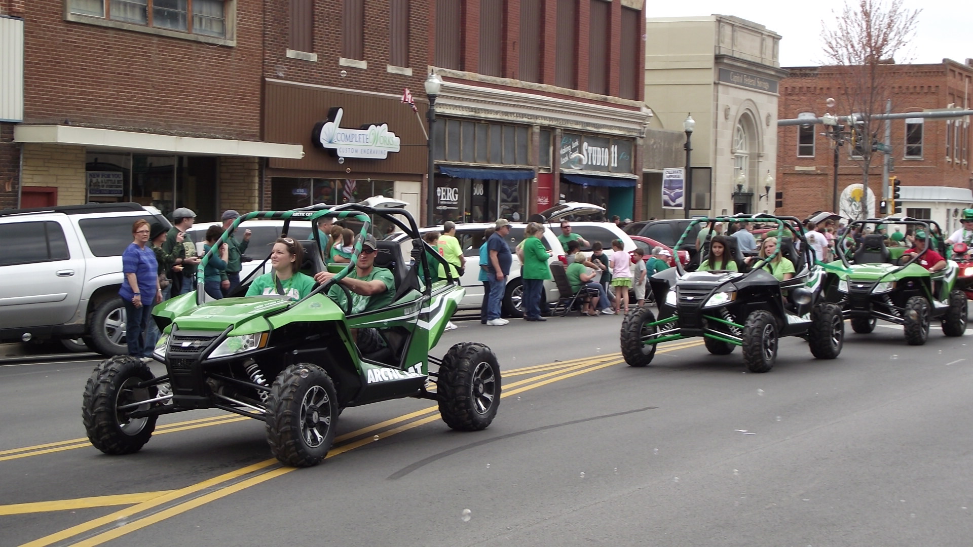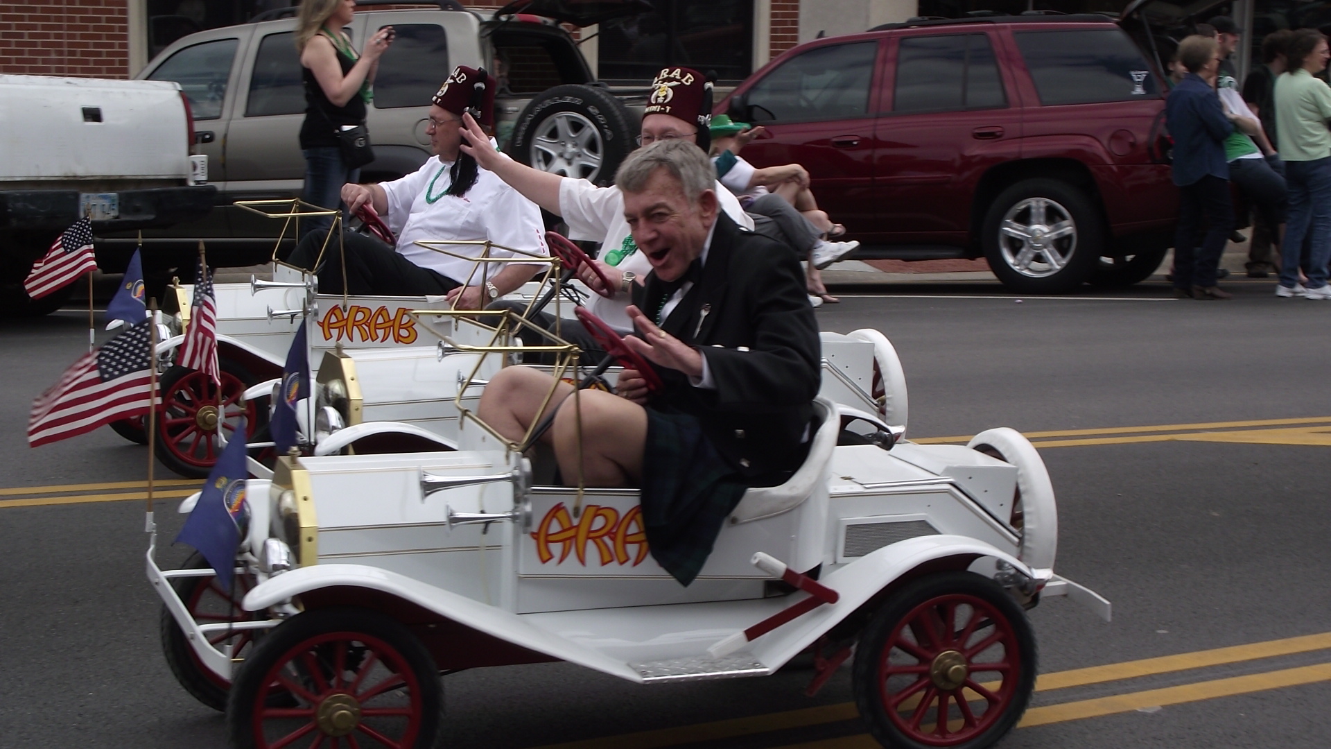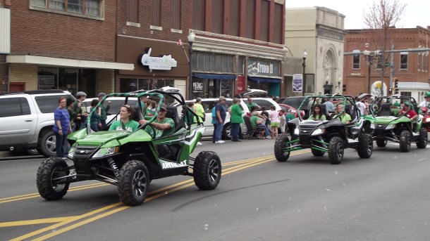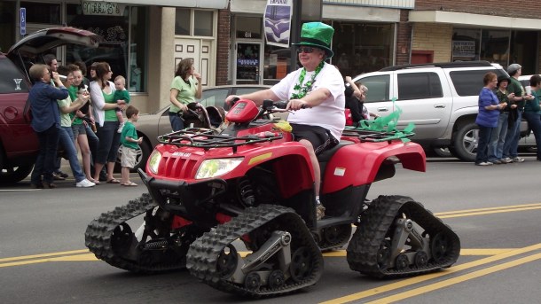 En nuestra pequeña ciudad hay 4 desfiles anuales, siendo honestos, los 4 son muy parecidos, de hecho podria uno parecer repeticion del anterior, y es que los participantes son casi los mismos, lo unico que cambia un poco es la decoracion. En el desfile del 4 de julio predominan las banderas, en el dia de los veteranos lo militar, en el de Navidad, lo navideño, y en el de San Pato lo verde es lo de moda.