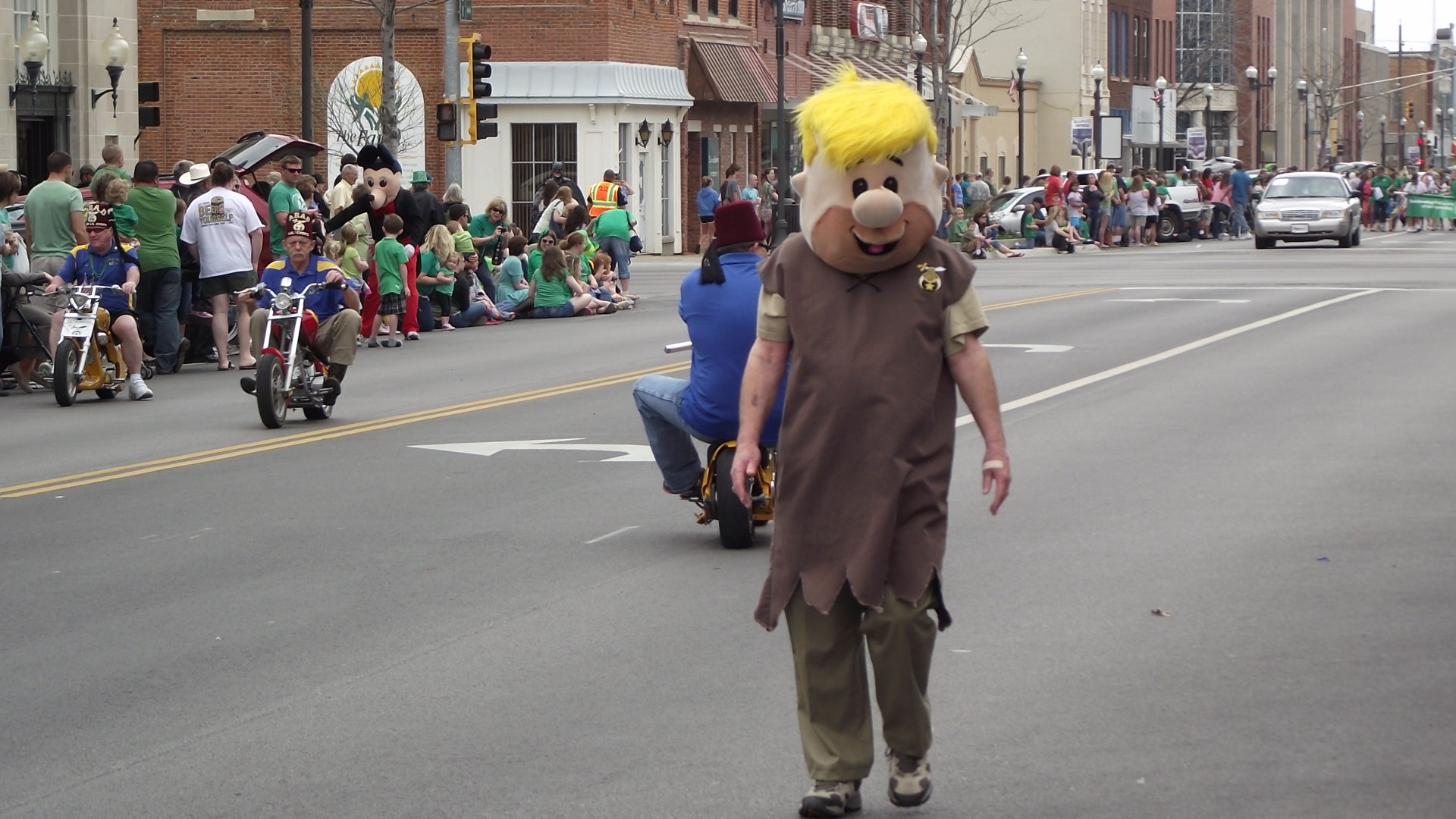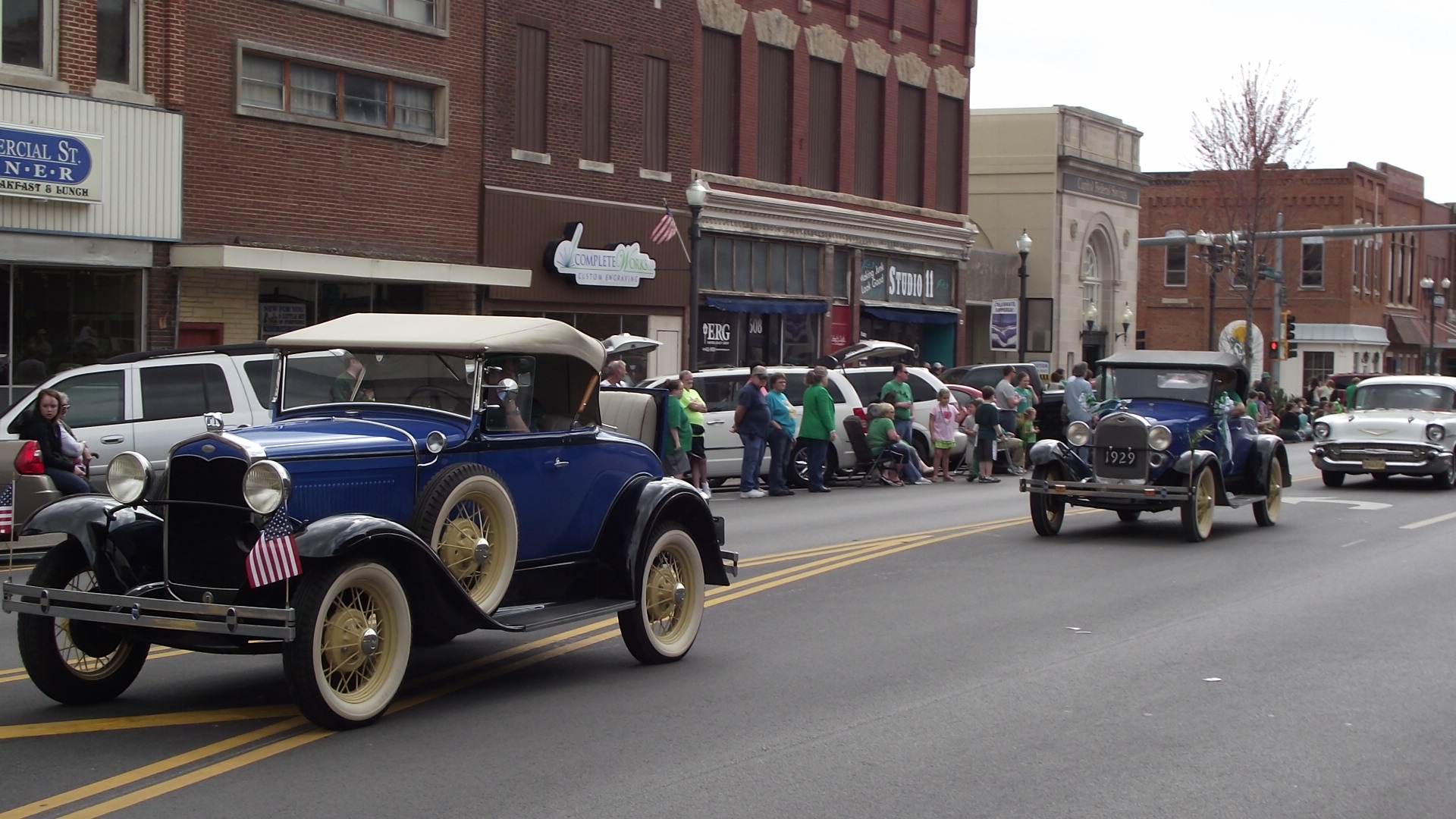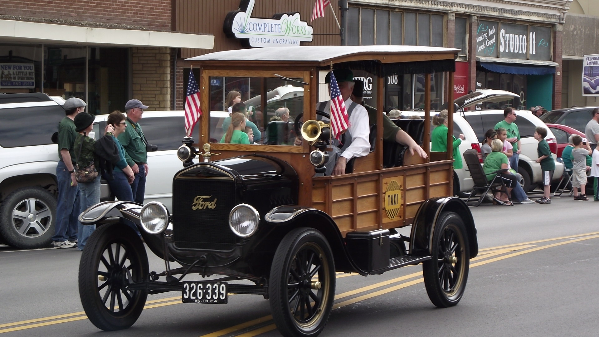 En nuestra pequeña ciudad hay 4 desfiles anuales, siendo honestos, los 4 son muy parecidos, de hecho podria uno parecer repeticion del anterior, y es que los participantes son casi los mismos, lo unico que cambia un poco es la decoracion. En el desfile del 4 de julio predominan las banderas, en el dia de los veteranos lo militar, en el de Navidad, lo navideño, y en el de San Pato lo verde es lo de moda.