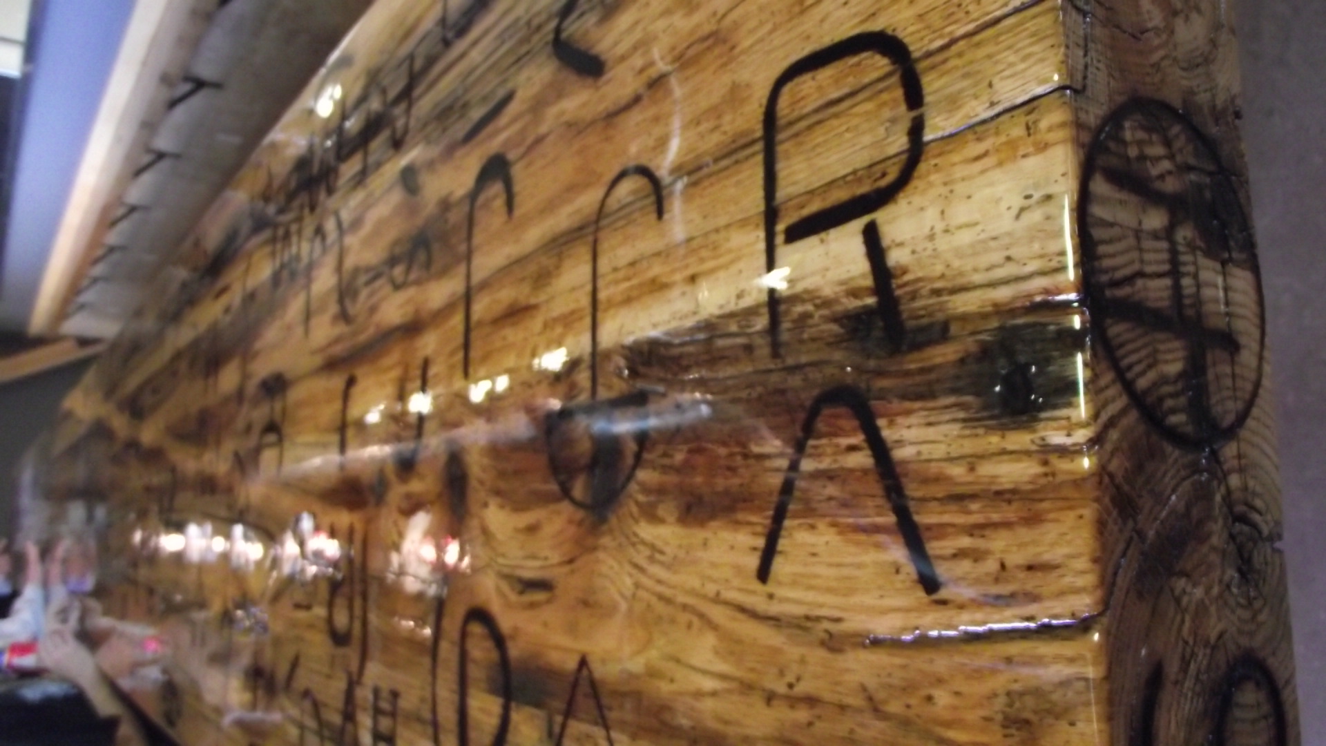 Tambien en la parte trasera se encuentra un mural que tiene un toque muy rustico: