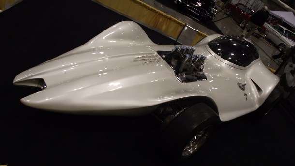 Seguimos con el llamado Mantaray, cuyo creador Dean Jeffries utilizo componentes de 2 autos Maserati Formula 1 Gran Prix, es obvio que el marco y chasis de dichos carros se oculta bajo esas curvas que estaban muy adelantadas a su epoca, pues este auto fue hecho en 1963 y estrenado en Oakland el 14 de febrero de 1964. El techo de burbuja se debio a que en los 60, los techos asi estaban de moda en los autos concepto.
