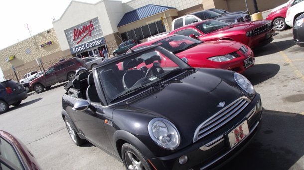 Esta claro que el dueño de ese Mini o tiene mucha flojera para al menos ponerle la capota cuando llega a su destino, o tiene mucha confianza y poca preocupacion de que a alguien se le antojen sus pertenencias. Asi deberia de ser siempre.