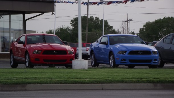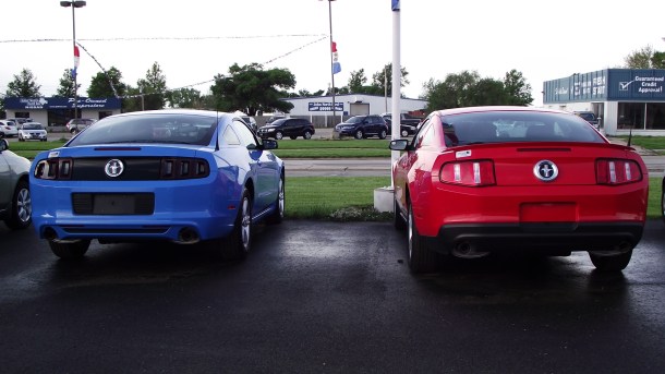 Por ultimo les dejo un par de fotos para que comparen el Mustang 2012 (rojo) y 2013 (azul):
